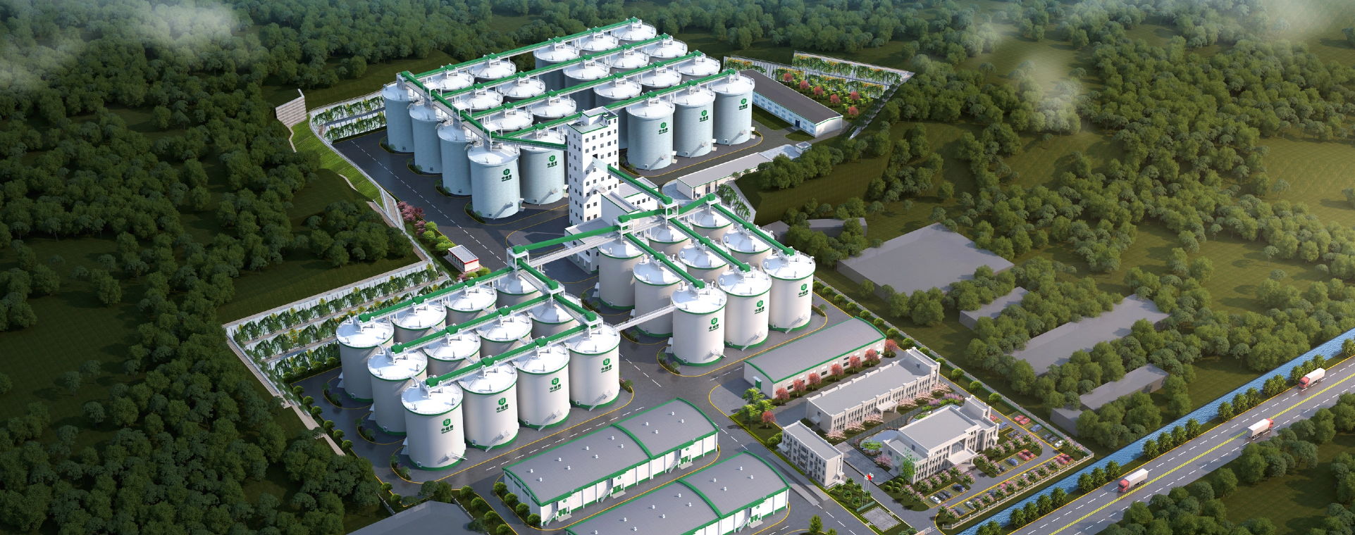 東莞國際糧油食品產(chǎn)業(yè)園倉儲物流配送中心項目位于廣東東莞經(jīng)濟開(kāi)發(fā)金霞組團內,用地約為1450畝,主要是由鐵路物流片區、批發(fā)交易片區及港口物流加工片區組成。設計總倉容50萬(wàn)t,4條鐵路專(zhuān)用線(xiàn),4個(gè)內河泊位。