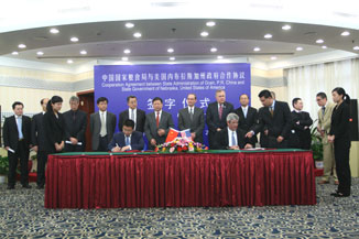 翟江臨院長(cháng)與美國齊富工業(yè)公司Roger Townsend總裁在國家糧食局領(lǐng)導見(jiàn)證下簽訂協(xié)議